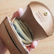 手のひらに小銭をのせるように出すことのできるコンパクトな財布です。