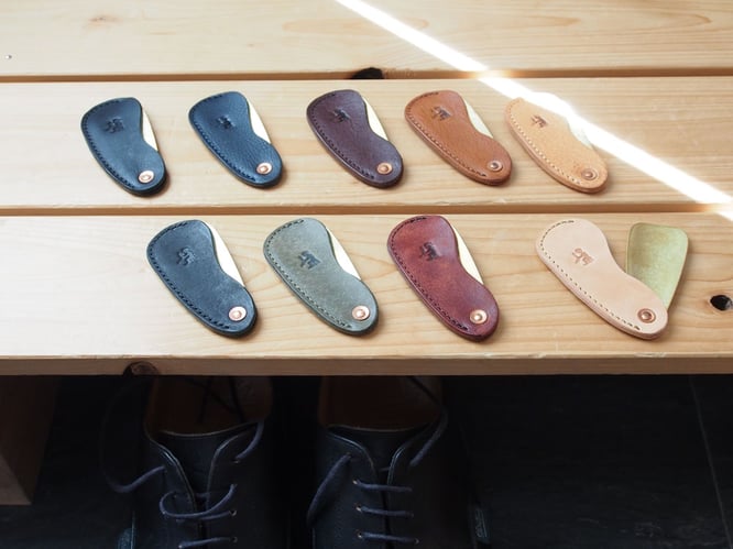 ※真鍮部分(靴べら部分)や銅鋲には緑青が発生いたします。