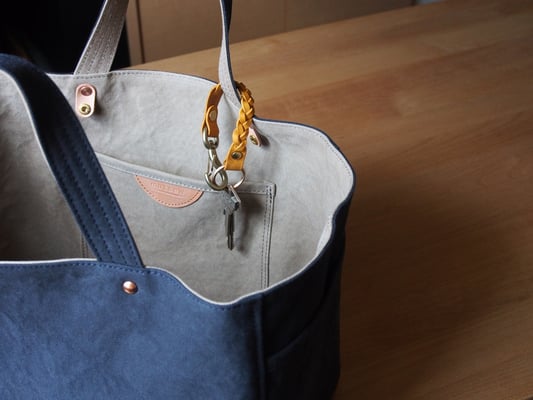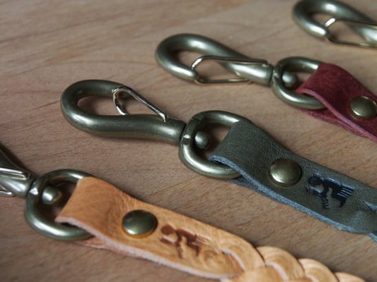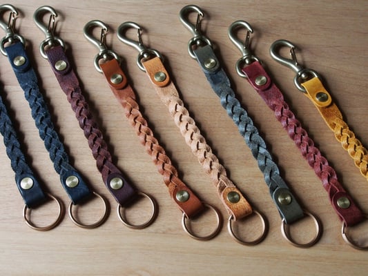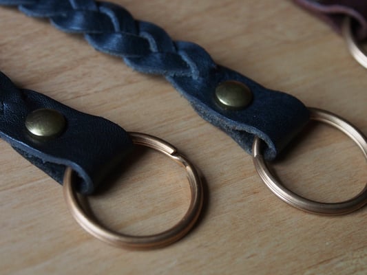 ベルトループやバッグの持ち手等に付けていただける、革ひもタイプのキーリング(キーホルダー)です。