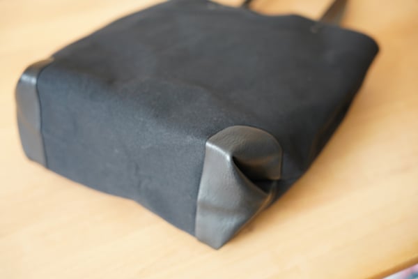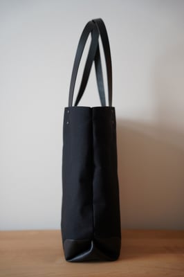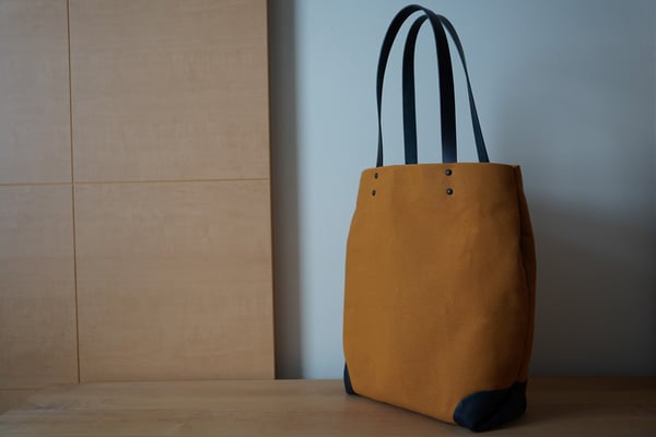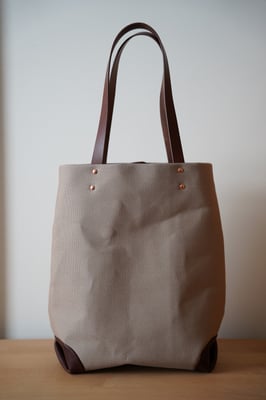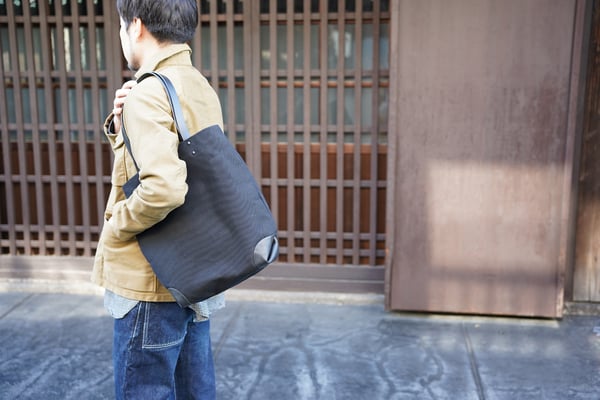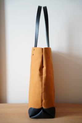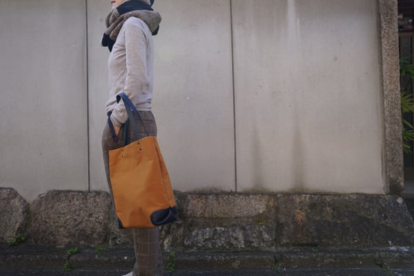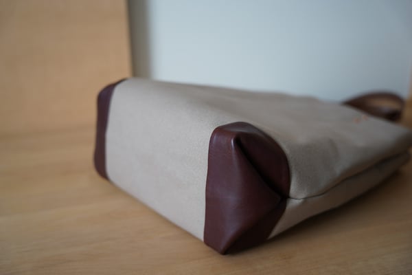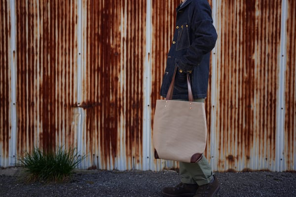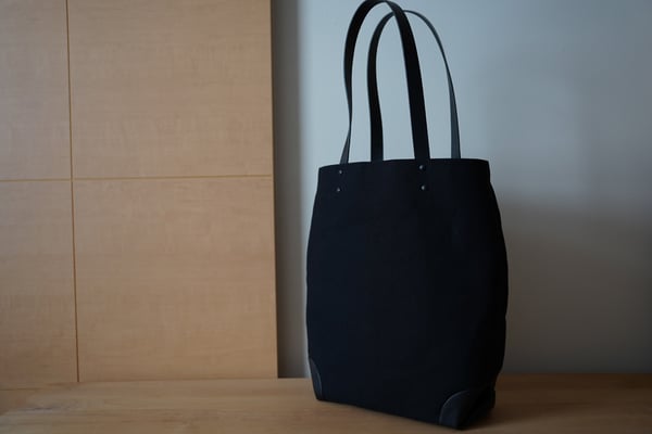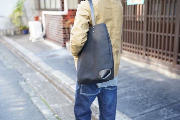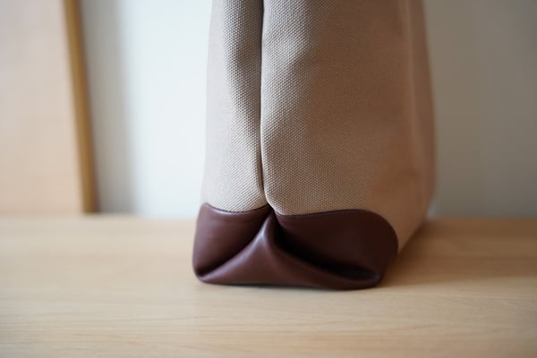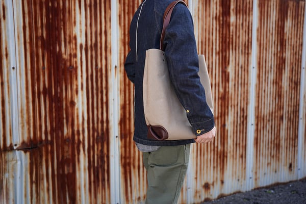 A4ファイルが入る大きさの縦型キャンバス×レザートートバッグです。