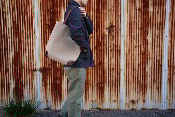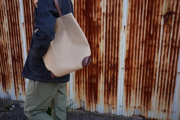 持ち手:ハリとコシのある高品質の100%植物タンニン鞣しイタリアンレザー(牛革)を使用。
