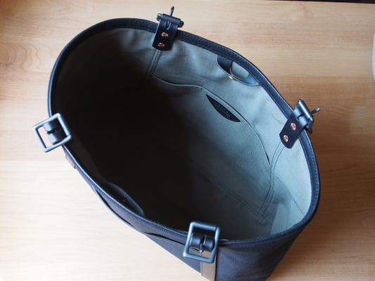 持ち手の長さを調整でき、A4サイズのファイルが縦向きでも横向きでも入ります。